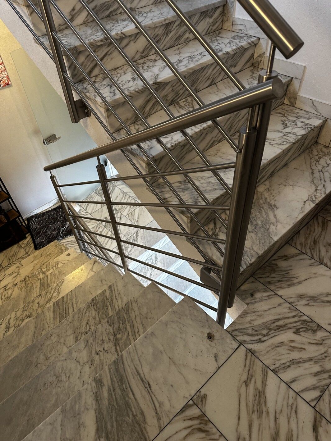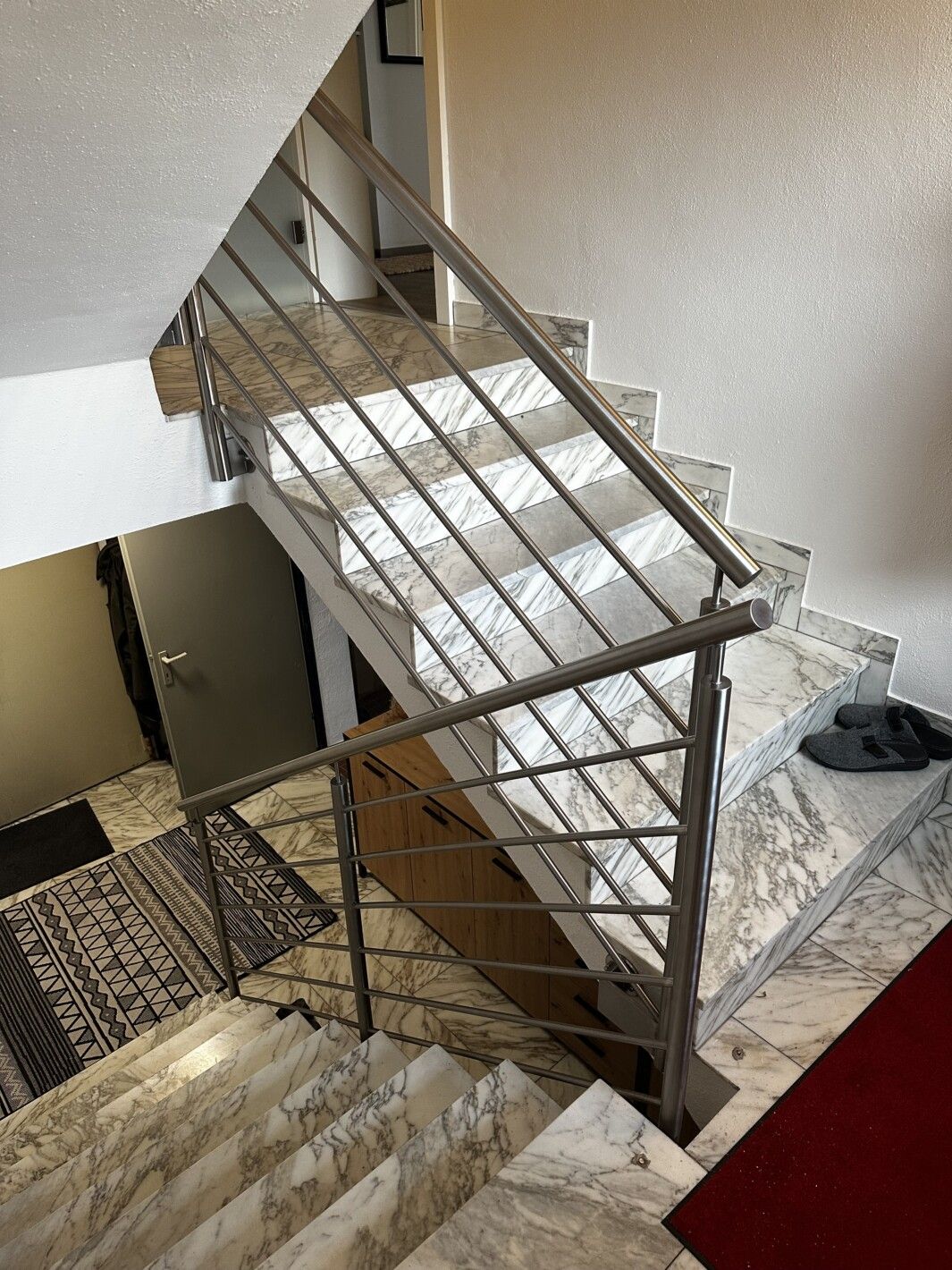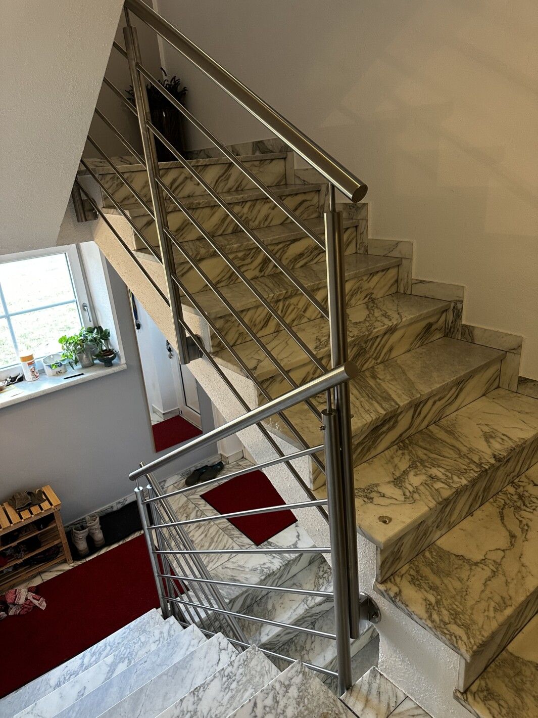 Edelstahl Relinggeländer voll verschweißt, Steher 42.4 mm, Handlauf 42.4mm, Reling Stäbe 15mm, mit Edelstahlplatten seitlich montiert, jeder Stab voll verschweißt, rundum voll verschweißt