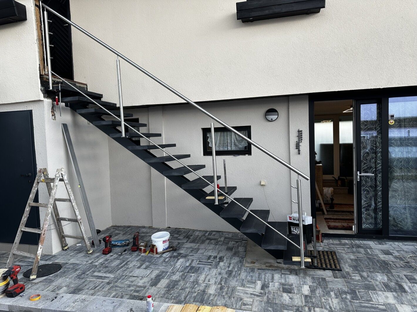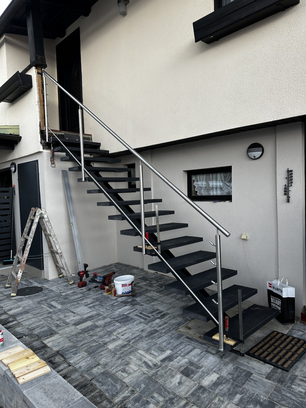 Mittelholmtreppe nach RAL pulverbeschichtet, Trittstufen Glasfaserverstärkter Kunststoff, Bauzugelassen, Edelstahl Seilgeländer, Fotos folgen nach fertigstellung