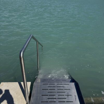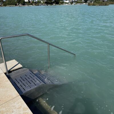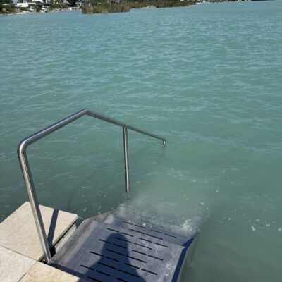 Edelstahlwangentreppe Trittstufen aus Edelstahlblech gelasert, gekantet, voll verschweißt, mit Edelstahlhandlauf
