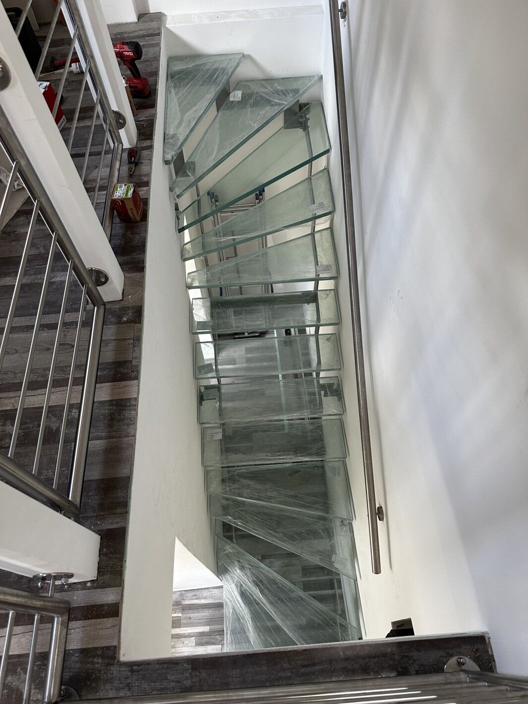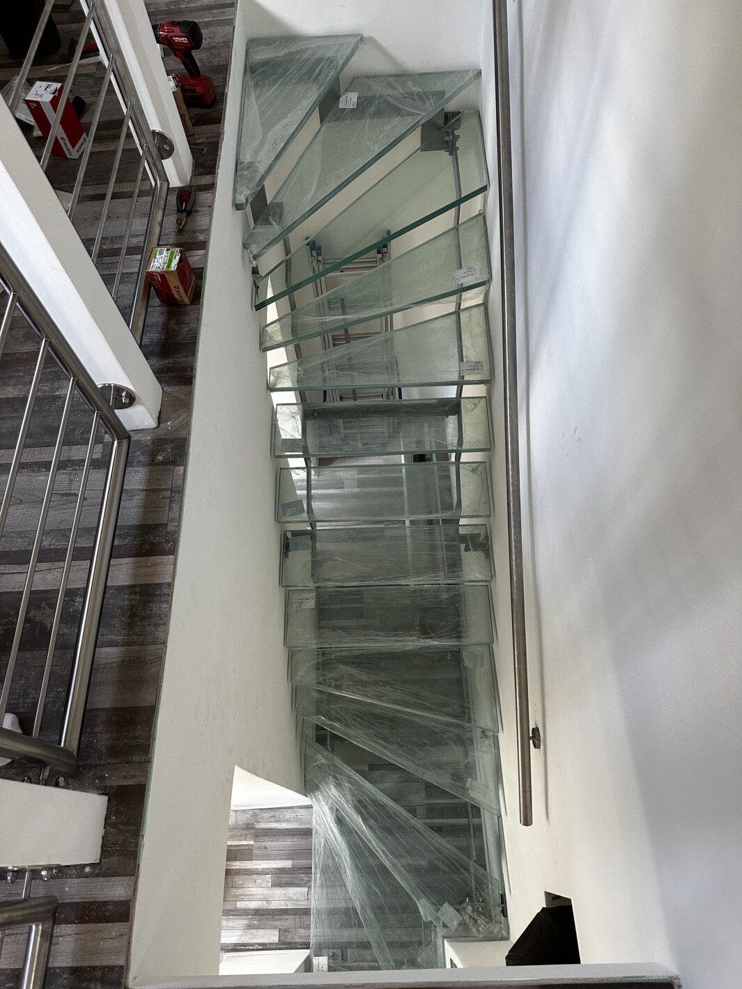 Stahlwange 2x 1/4 gewendelt, mit Glastrittstufen belegt, weitere Fotos folgen