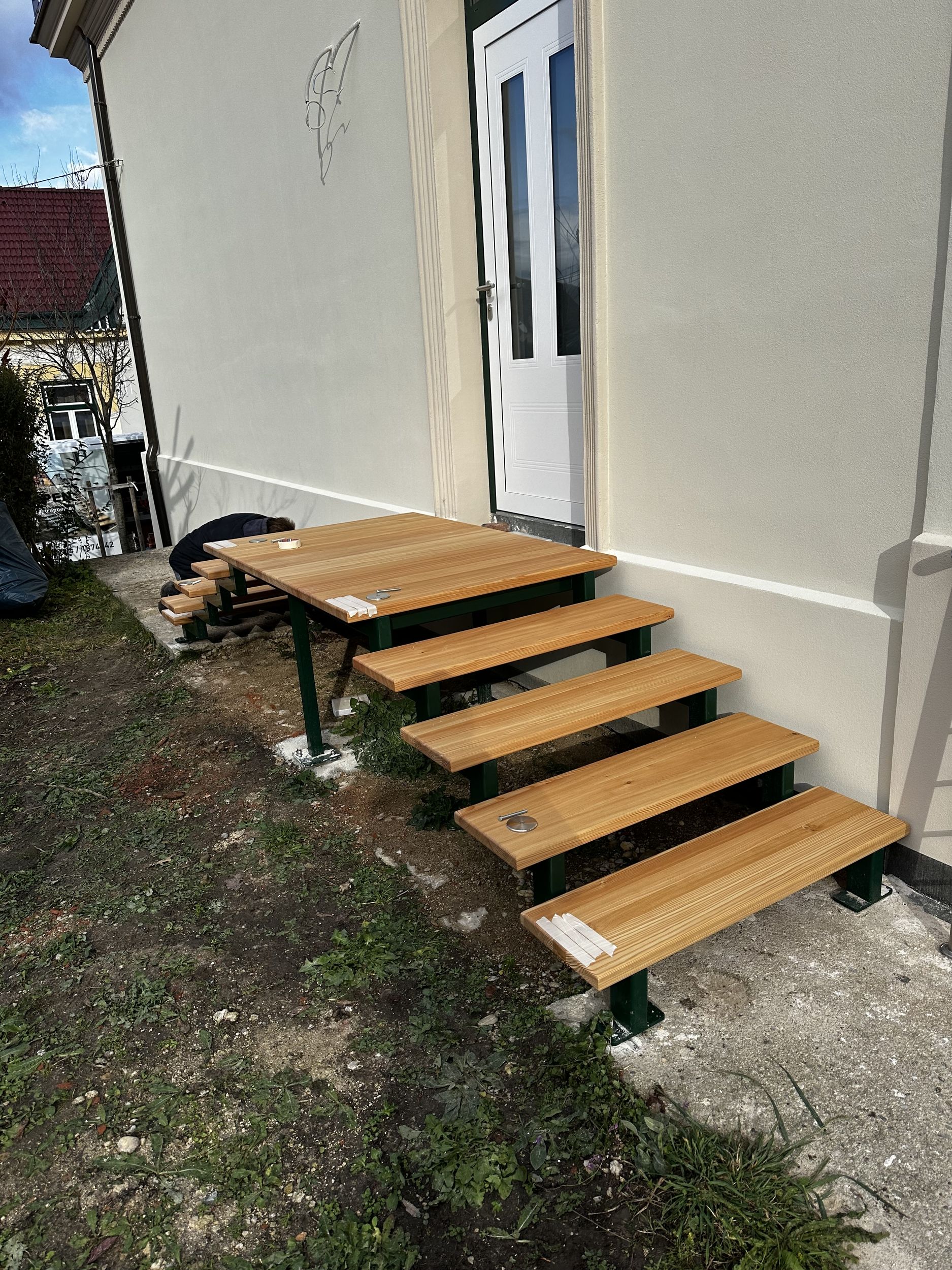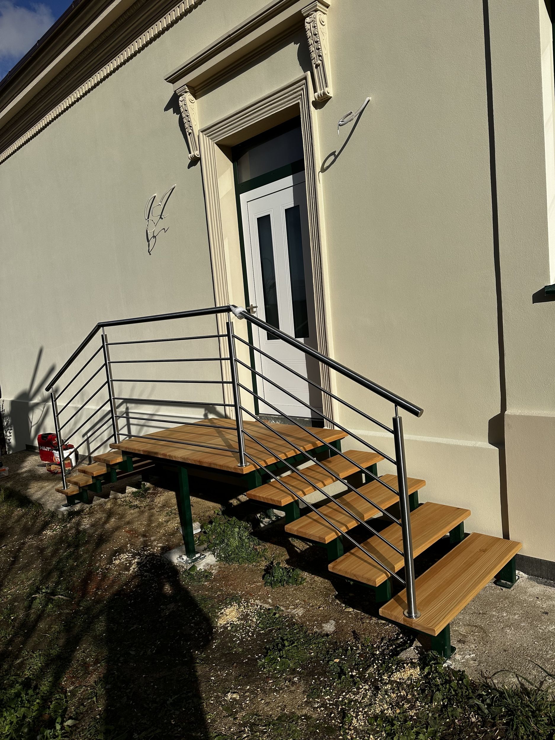 Zweiholmtreppe mit Relinggeländer, Trittstufen aus Lärche