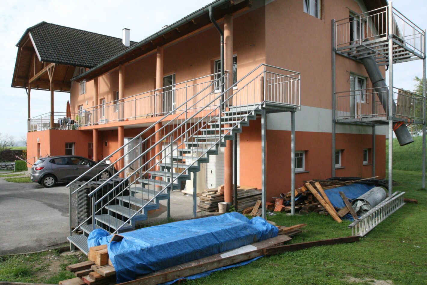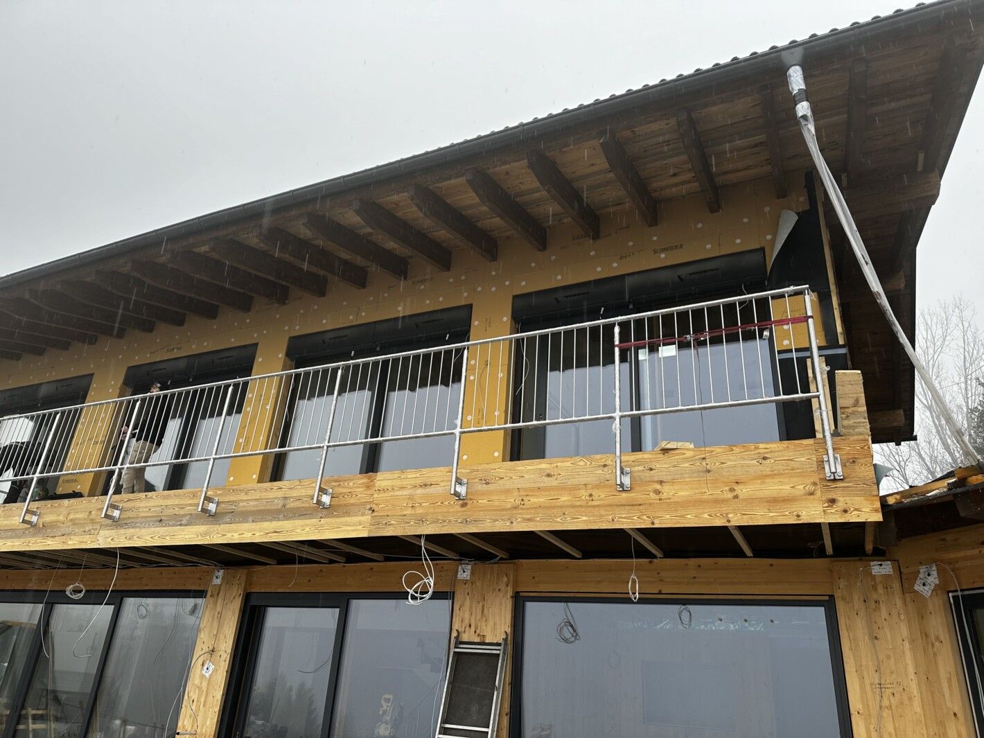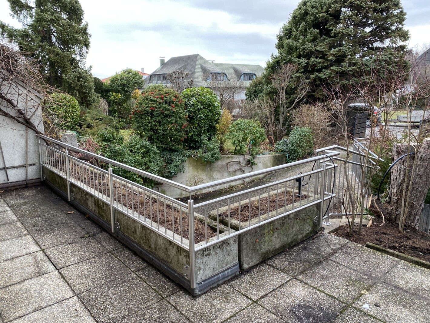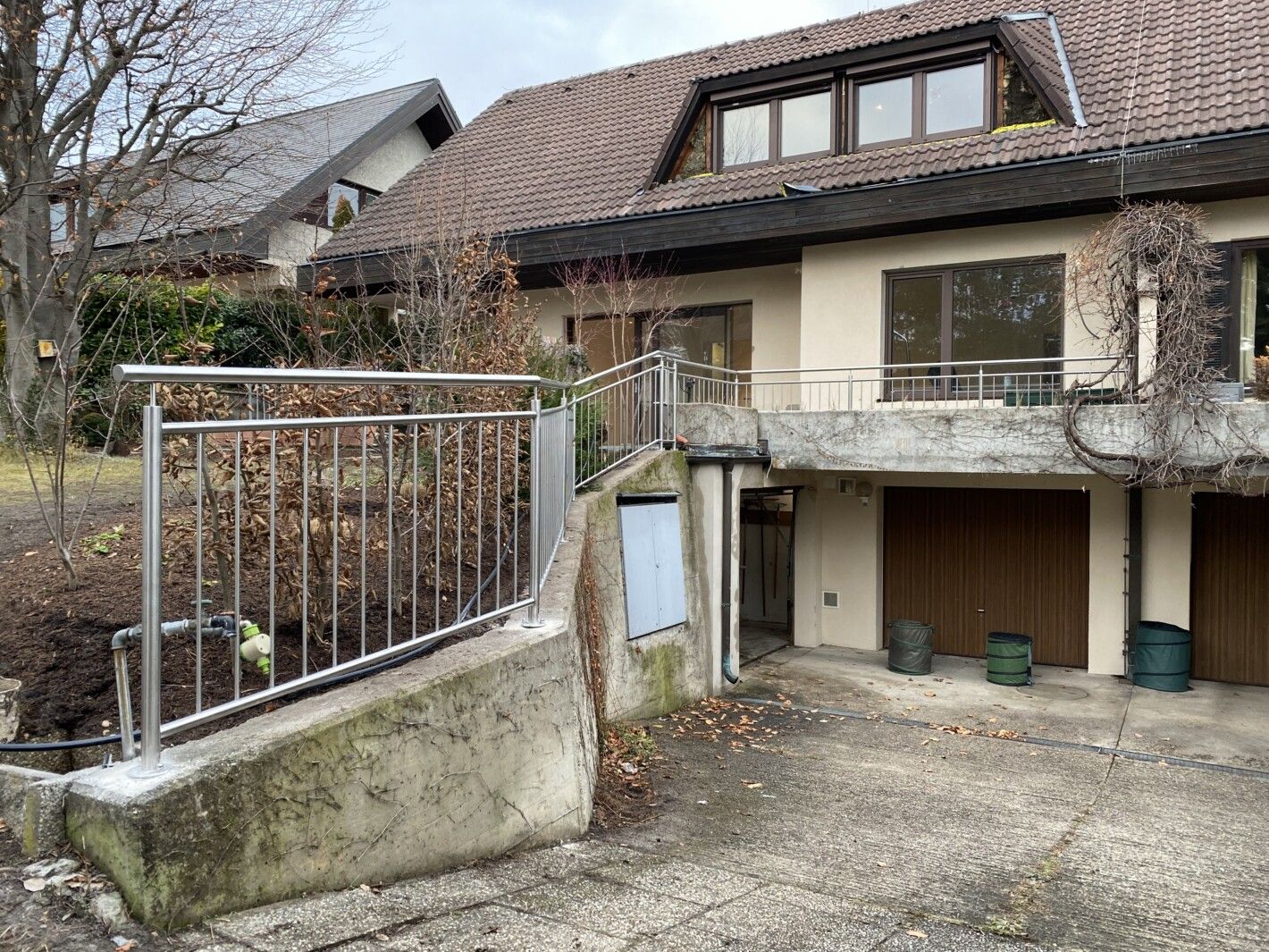 Sicherheit und Formschönheit: Bei diesem Treppengeländer werden vertikale Geländerstäbe, mit einem max. Stababstand von 12 cm kindersicher aus hochwertigem Edelstahl zwischen Ober,- und Unterzug voll verschweißt.