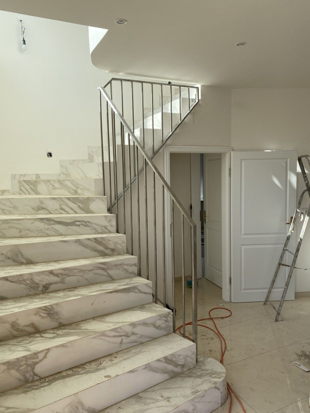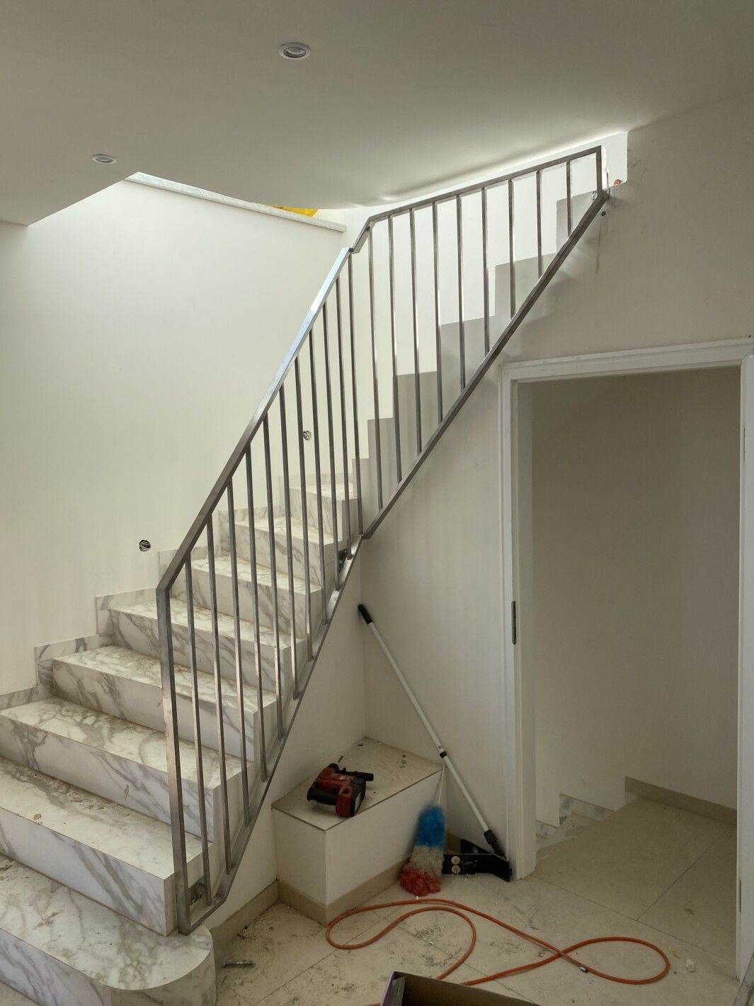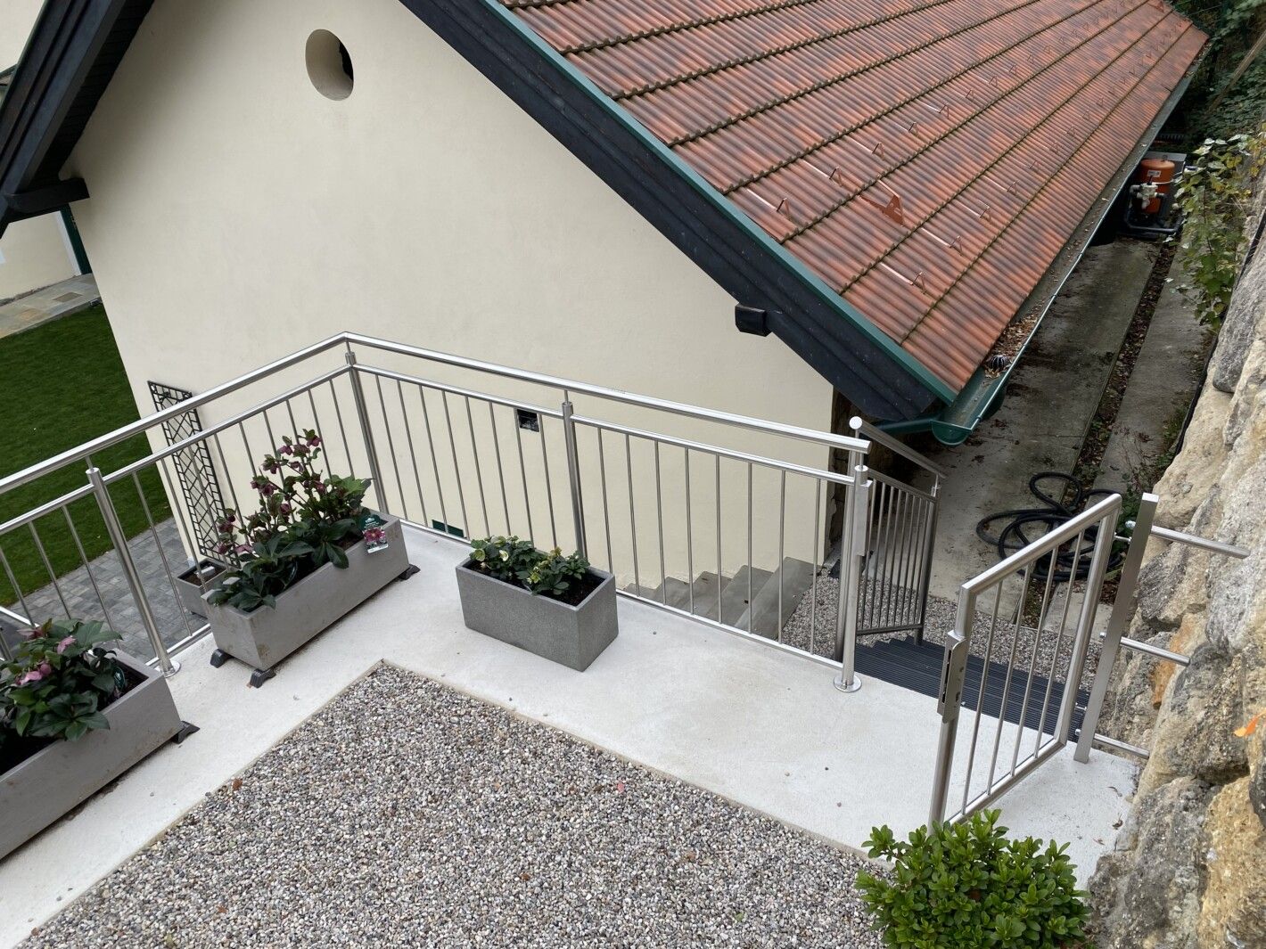 Wenn Sie Ihrem Haus einen luxuriösen Touch geben möchten, erwägen Sie den Einbau von Handläufen aus Edelstahl. Damit können Sie schnell und einfach das Erscheinungsbild Ihrer Treppe, Ihres Balkons, Ihrer Terrasse, Ihres Poolzauns, Ihrer Pergola, Ihrer Außenküche und vieles mehr aufwerten. Bei diesem Geländer werden vertikale, kindersichere Geländerstäbe aus hochwertigem Edelstahl (oder Holz) in einen Metallrahmen eingebettet. Die Füllstäbe werden mit dem Stiegengeländer verschweißt und bestechen durch klare Formen und edles Design.