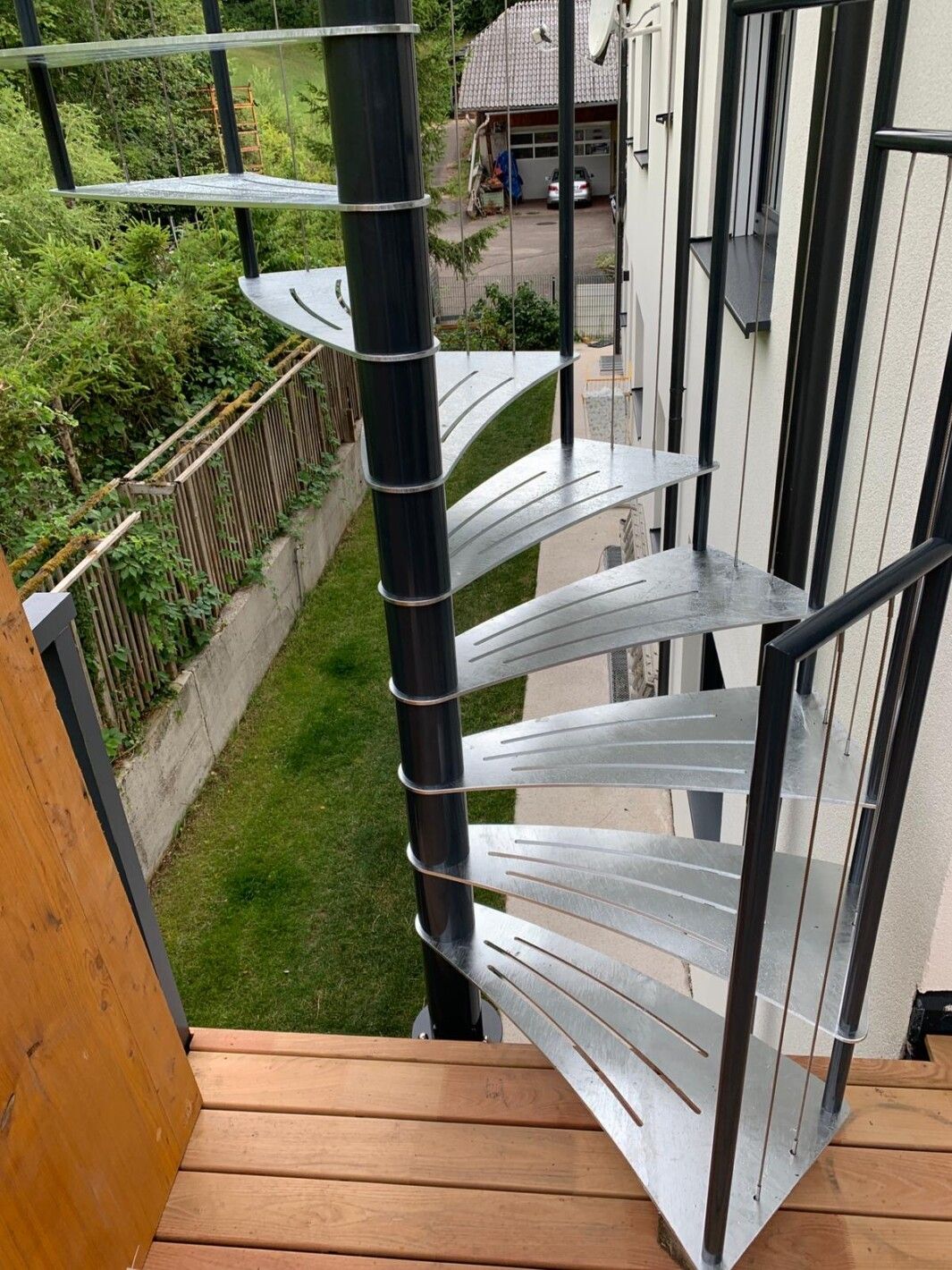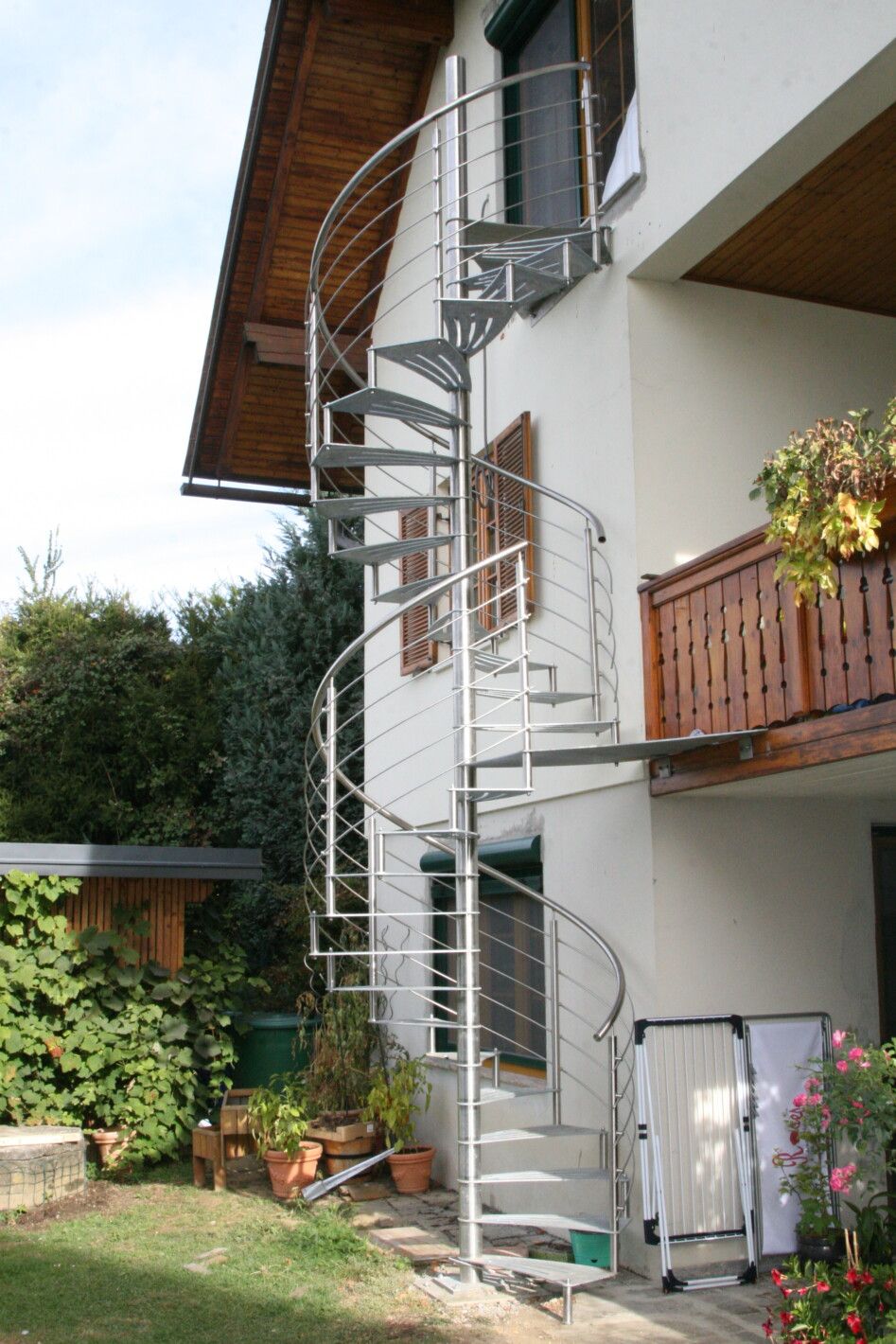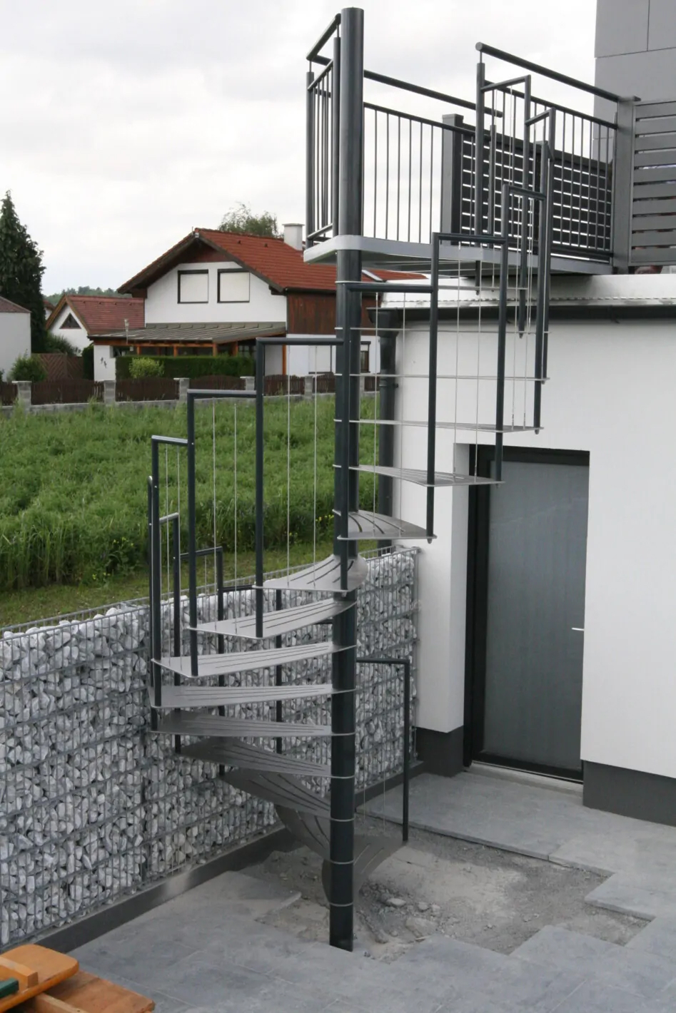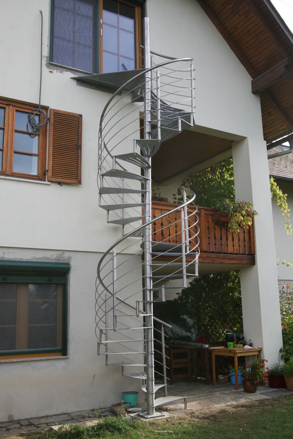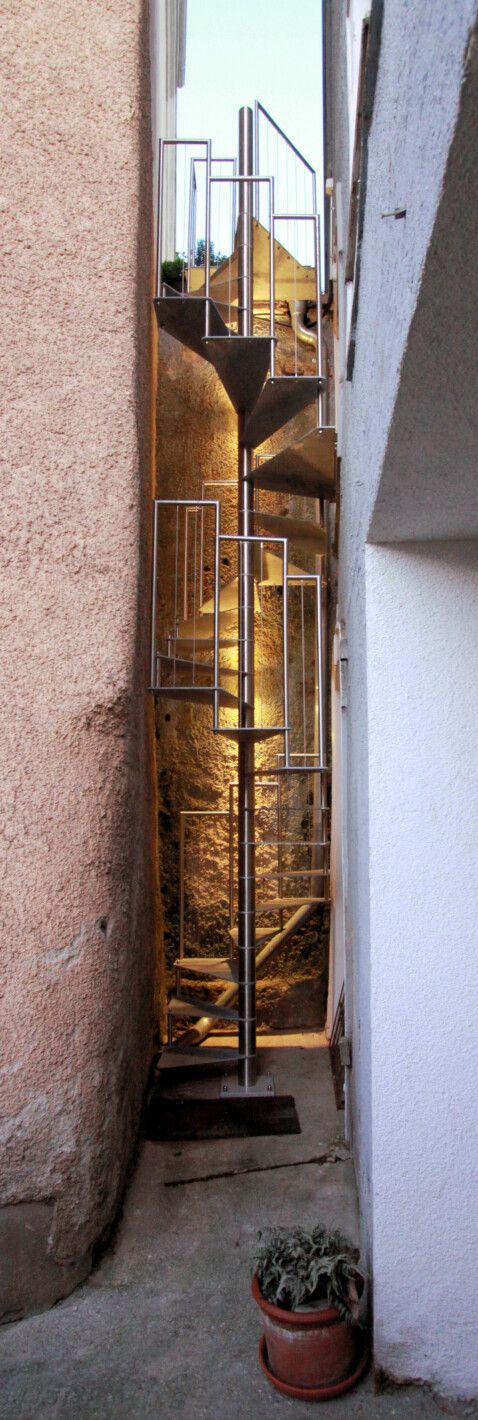 Eine Spindeltreppe für innen und außen ist platzsparend und ein außergewöhnlicher Blickfang. Die Spindeltreppe Linz für den Außenbereich erfüllt höchste Ansprüche an Qualität, modernem Design und Funktionalität. Elegant geschwungen und aus Edelstahl gefertigt, ist diese Außen-Spindeltreppe äußerst witterungsbeständig und pflegeleicht. Wir bieten Ihnen stabile, spindelförmige Außentreppen mit rutschsicheren, gelaserten Trittstufen aus feuerverzinktem Stahl oder auf Wunsch nach RAL-Farben. Bei Bedarf fertigen wir das Edelstahl-Geländer mit Edelstahlseilen oder -stäben.