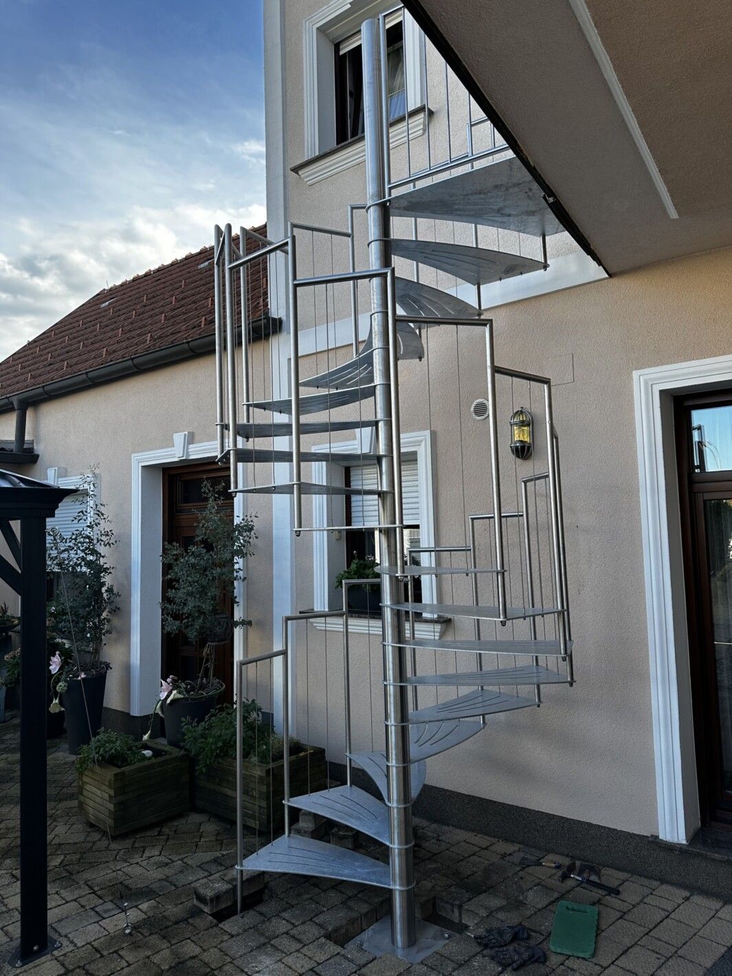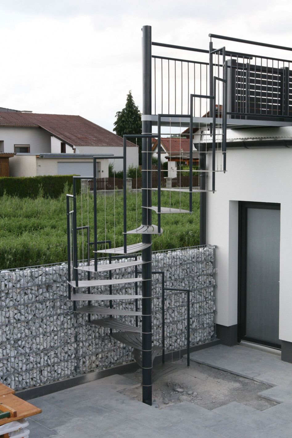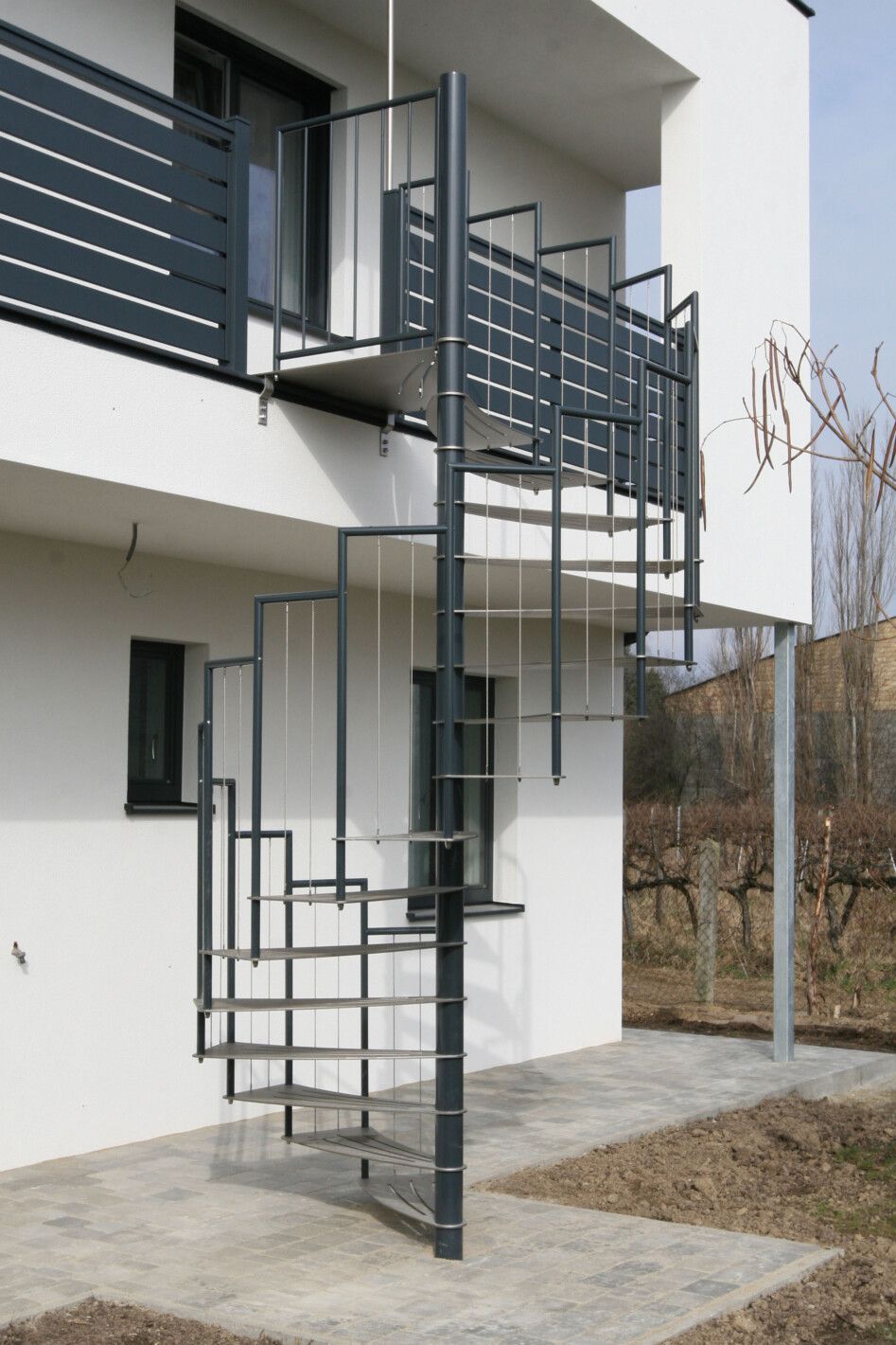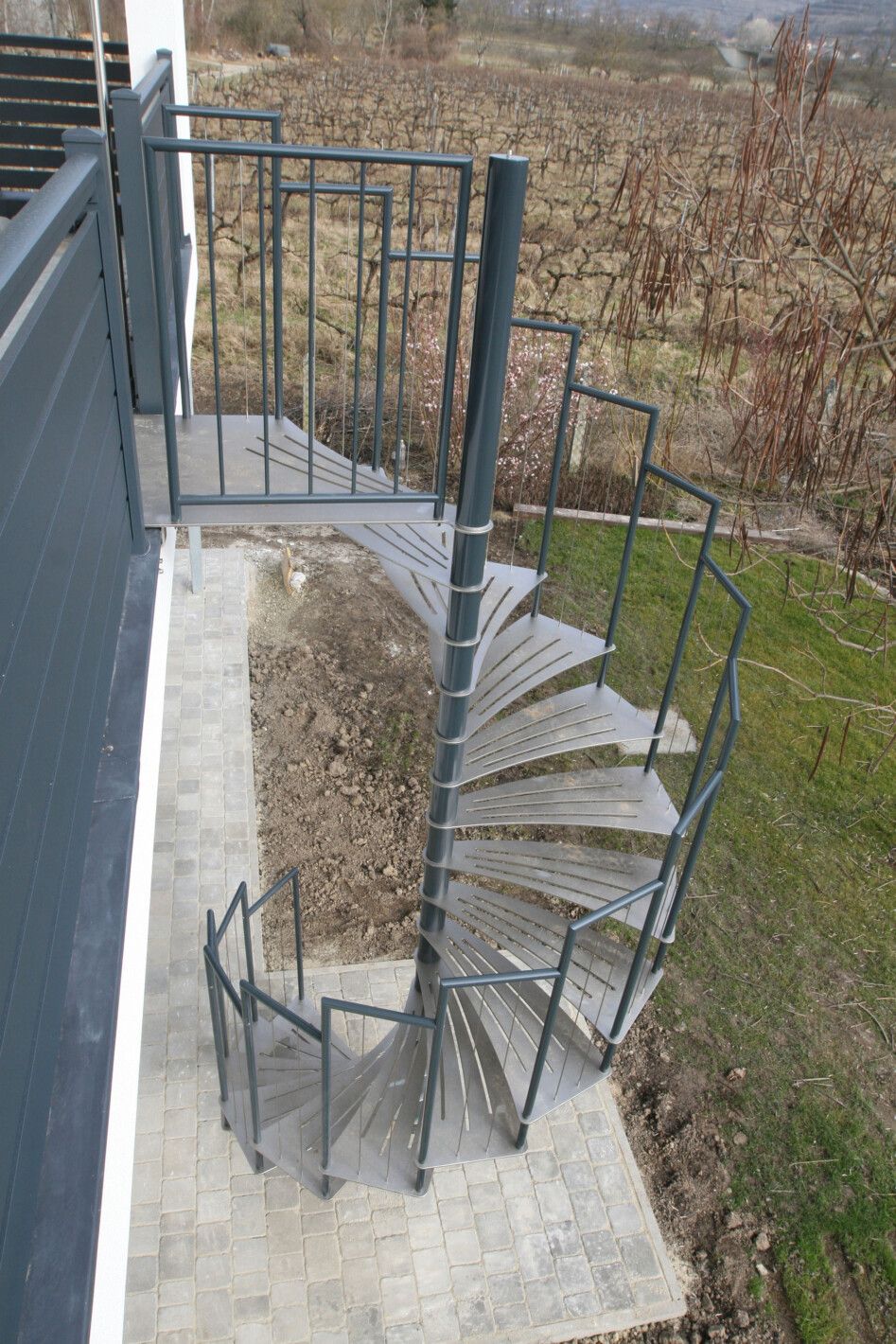 Eine Spindeltreppe für innen und außen ist platzsparend und ein außergewöhnlicher Blickfang. Die Spindeltreppe Linz für den Außenbereich erfüllt höchste Ansprüche an Qualität, modernem Design und Funktionalität. Elegant geschwungen und aus Edelstahl gefertigt, ist diese Außen-Spindeltreppe äußerst witterungsbeständig und pflegeleicht. Wir bieten Ihnen stabile, spindelförmige Außentreppen mit rutschsicheren, gelaserten Trittstufen aus feuerverzinktem Stahl oder auf Wunsch nach RAL-Farben. Bei Bedarf fertigen wir das Edelstahl-Geländer mit Edelstahlseilen oder -stäben.