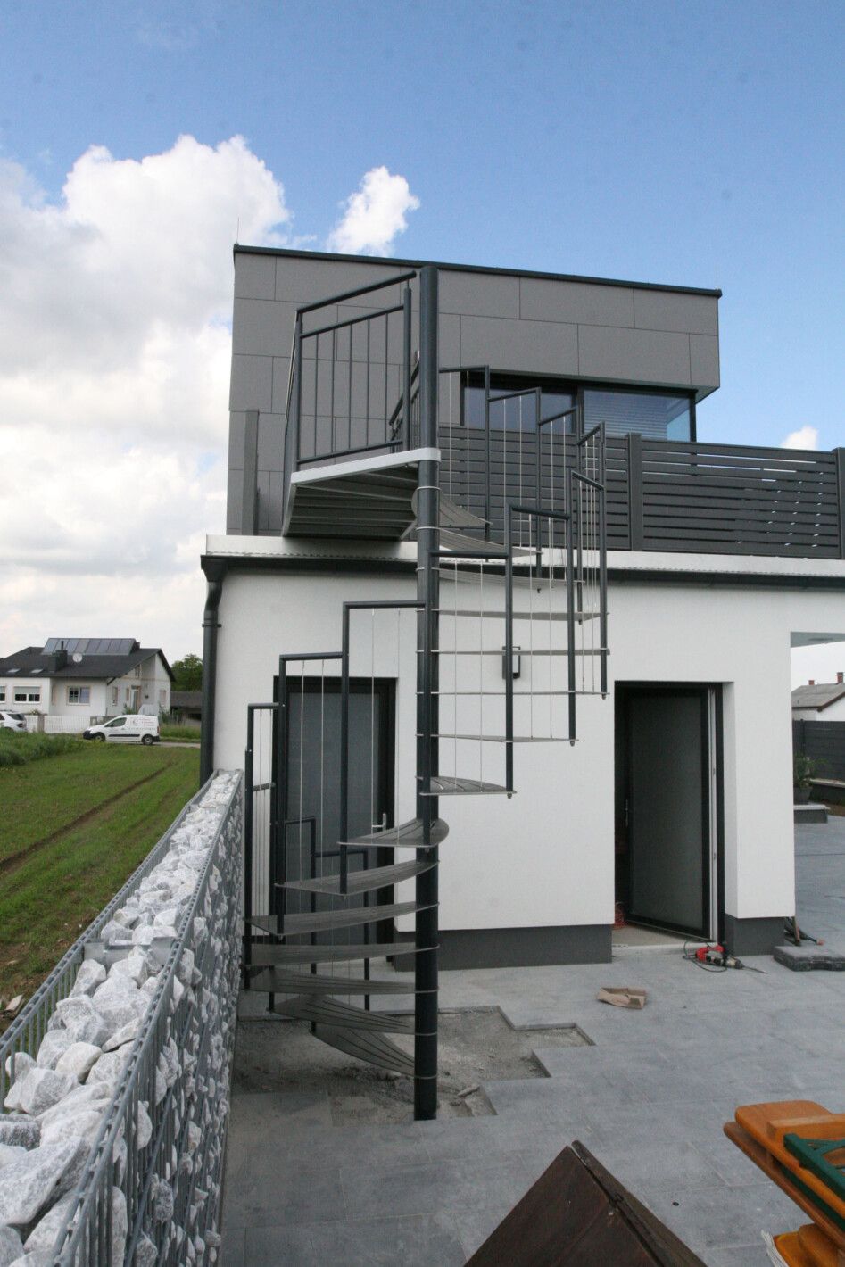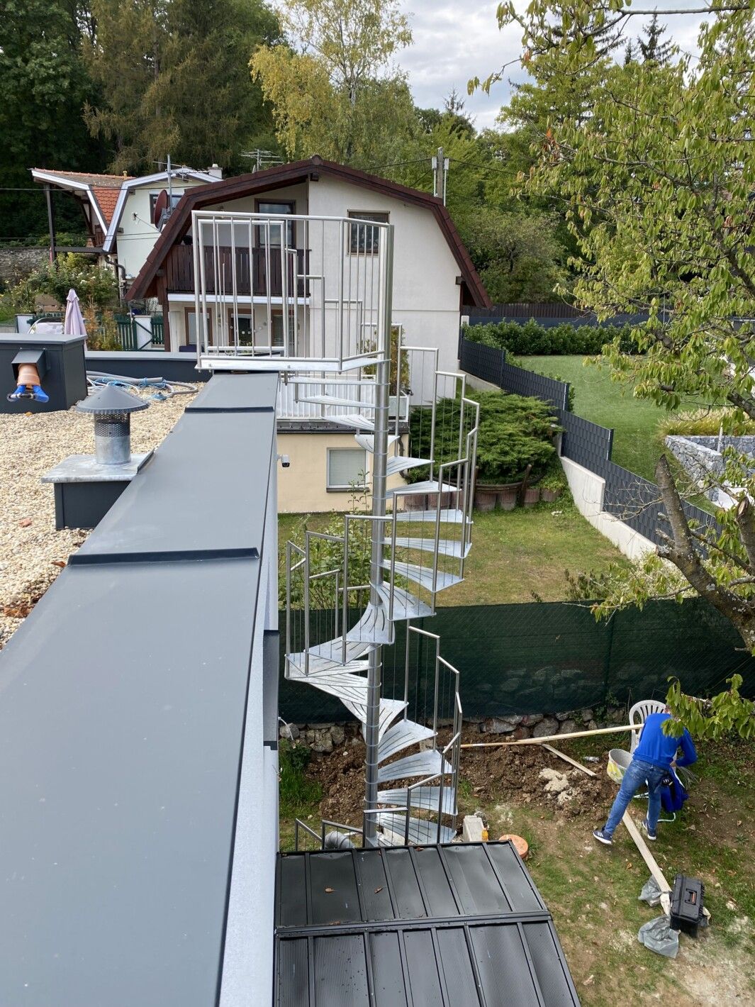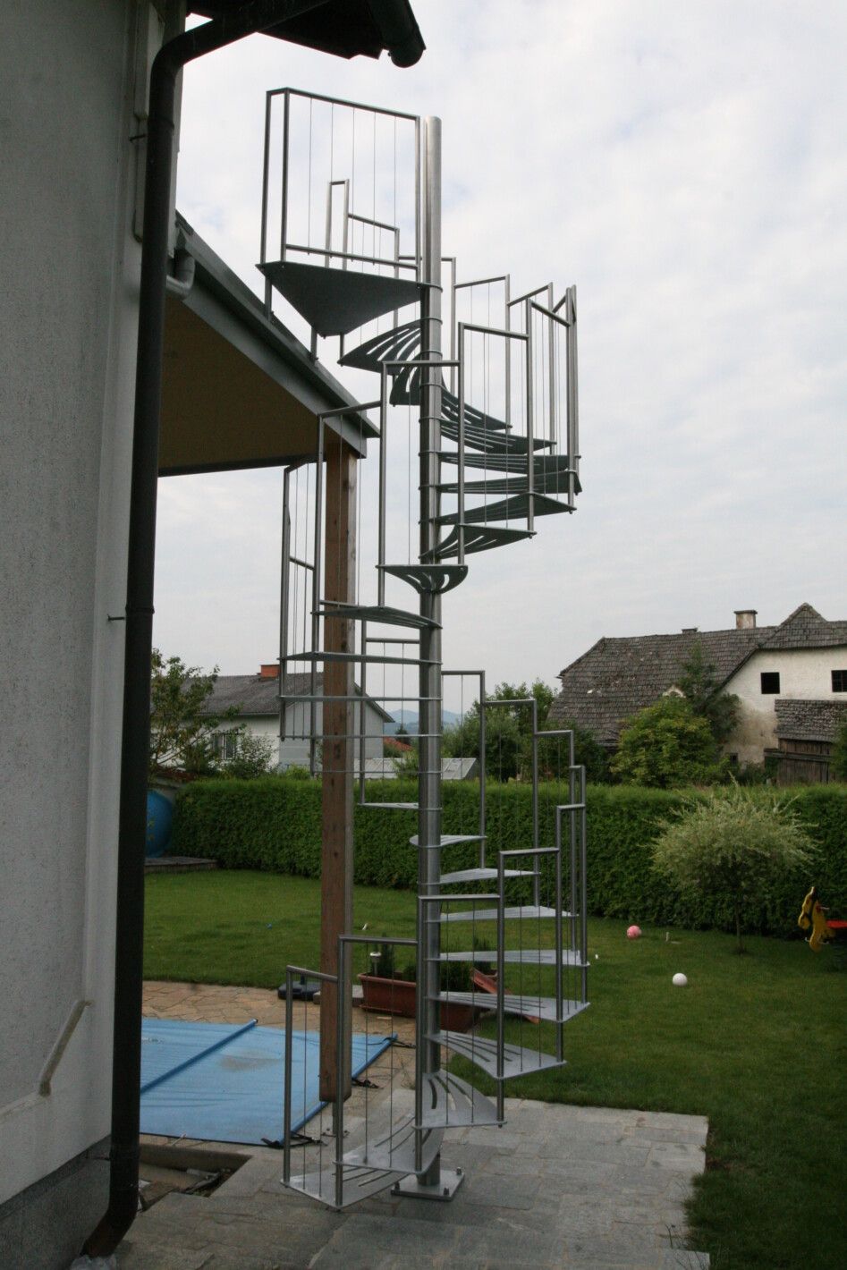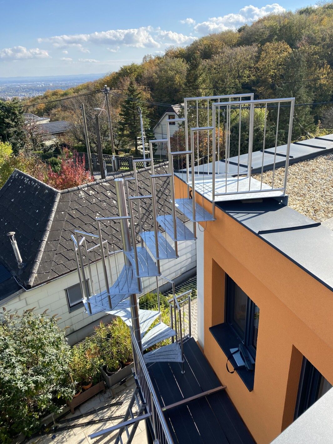 Eine Spindeltreppe für innen und außen ist platzsparend und ein außergewöhnlicher Blickfang. Die Spindeltreppe Linz für den Außenbereich erfüllt höchste Ansprüche an Qualität, modernem Design und Funktionalität. Elegant geschwungen und aus Edelstahl gefertigt, ist diese Außen-Spindeltreppe äußerst witterungsbeständig und pflegeleicht. Wir bieten Ihnen stabile, spindelförmige Außentreppen mit rutschsicheren, gelaserten Trittstufen aus feuerverzinktem Stahl oder auf Wunsch nach RAL-Farben. Bei Bedarf fertigen wir das Edelstahl-Geländer mit Edelstahlseilen oder -stäben.
