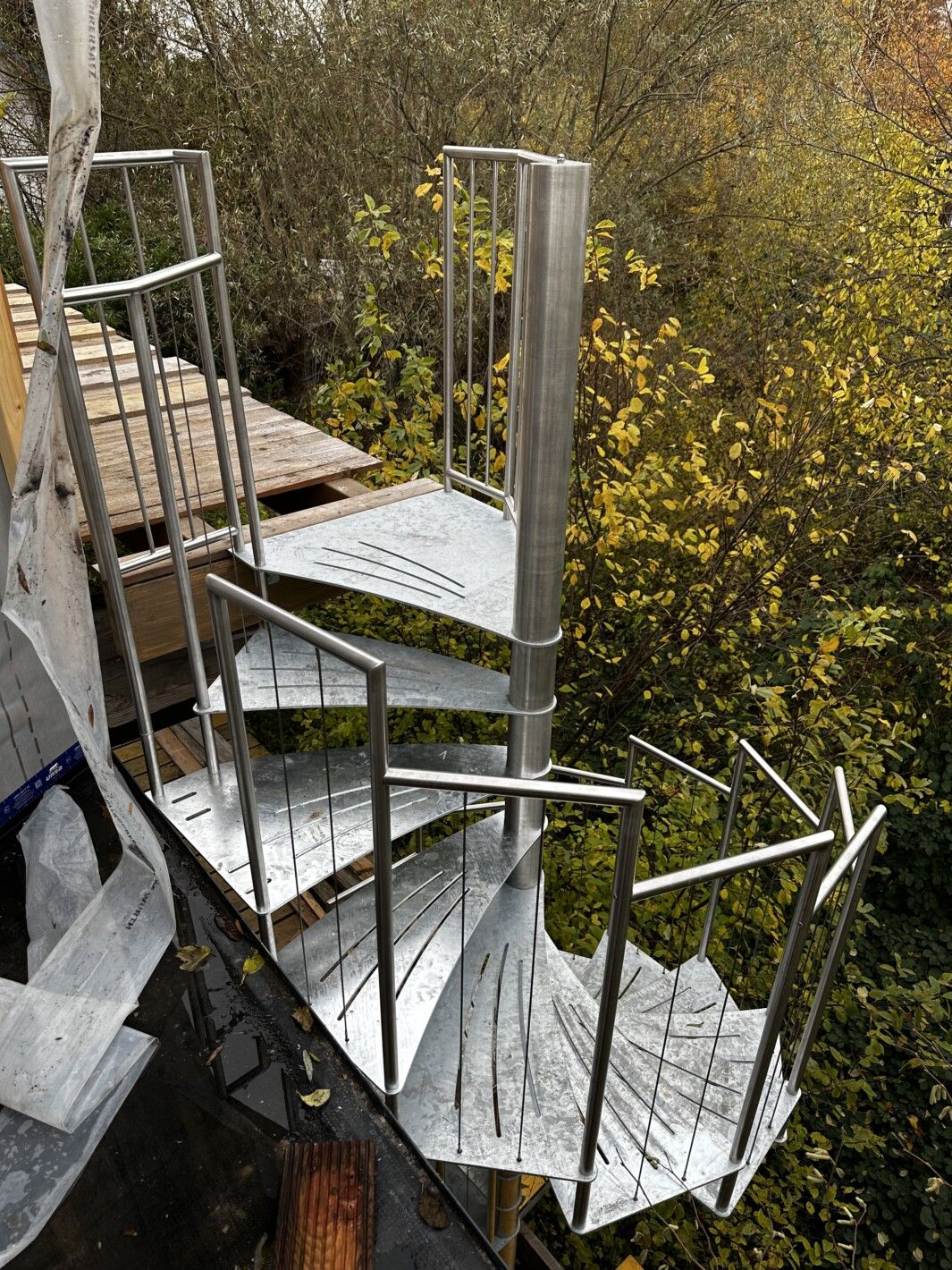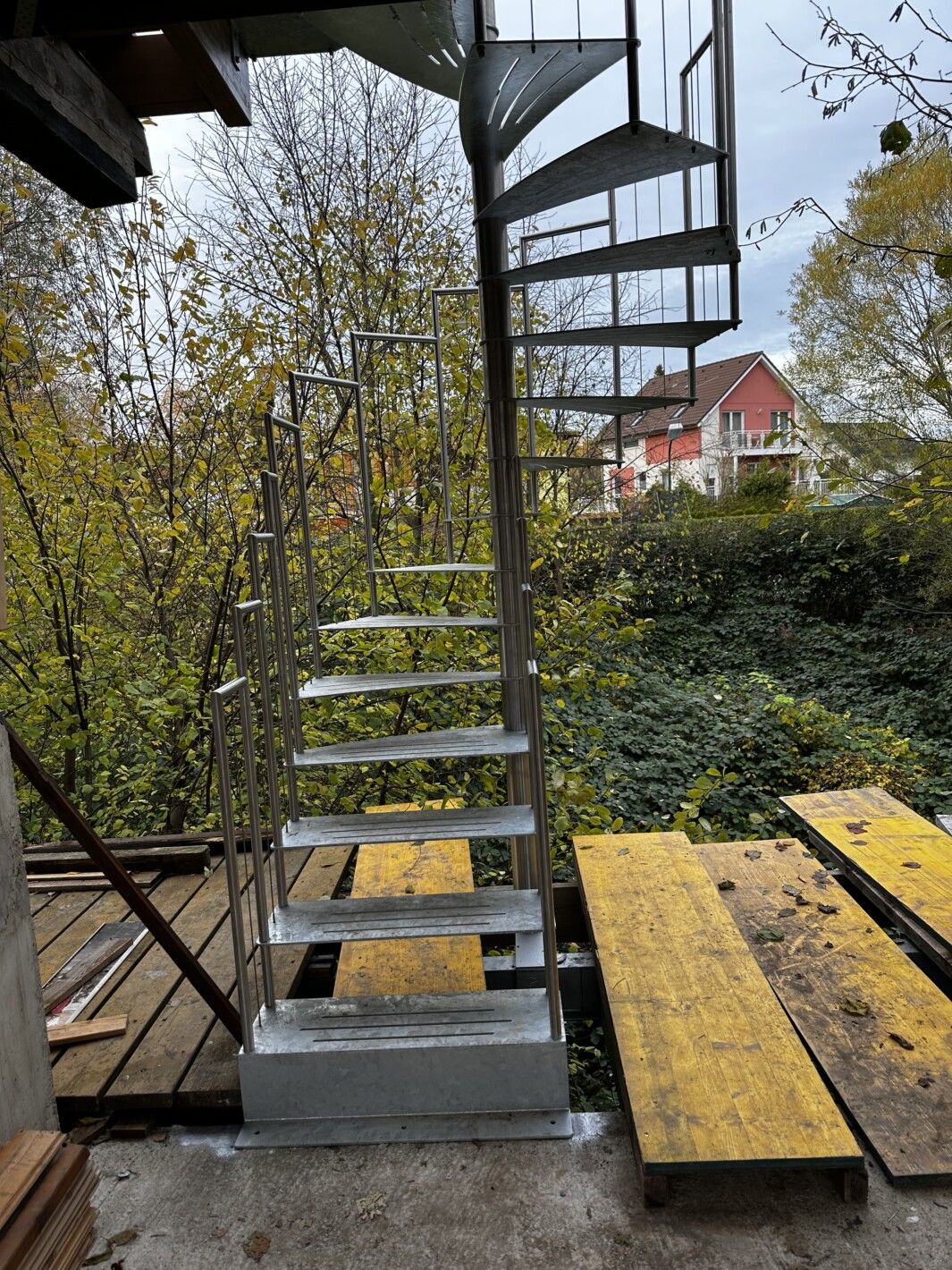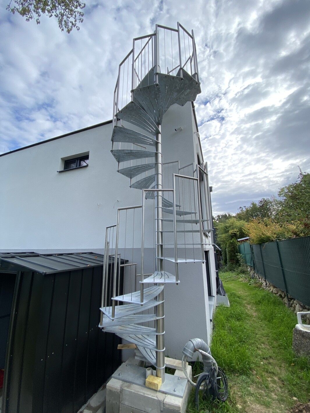- Grundpreis: Treppendurchmesser 140 cm mit 12 Steigungen (11 Trittstufen plus Podest)