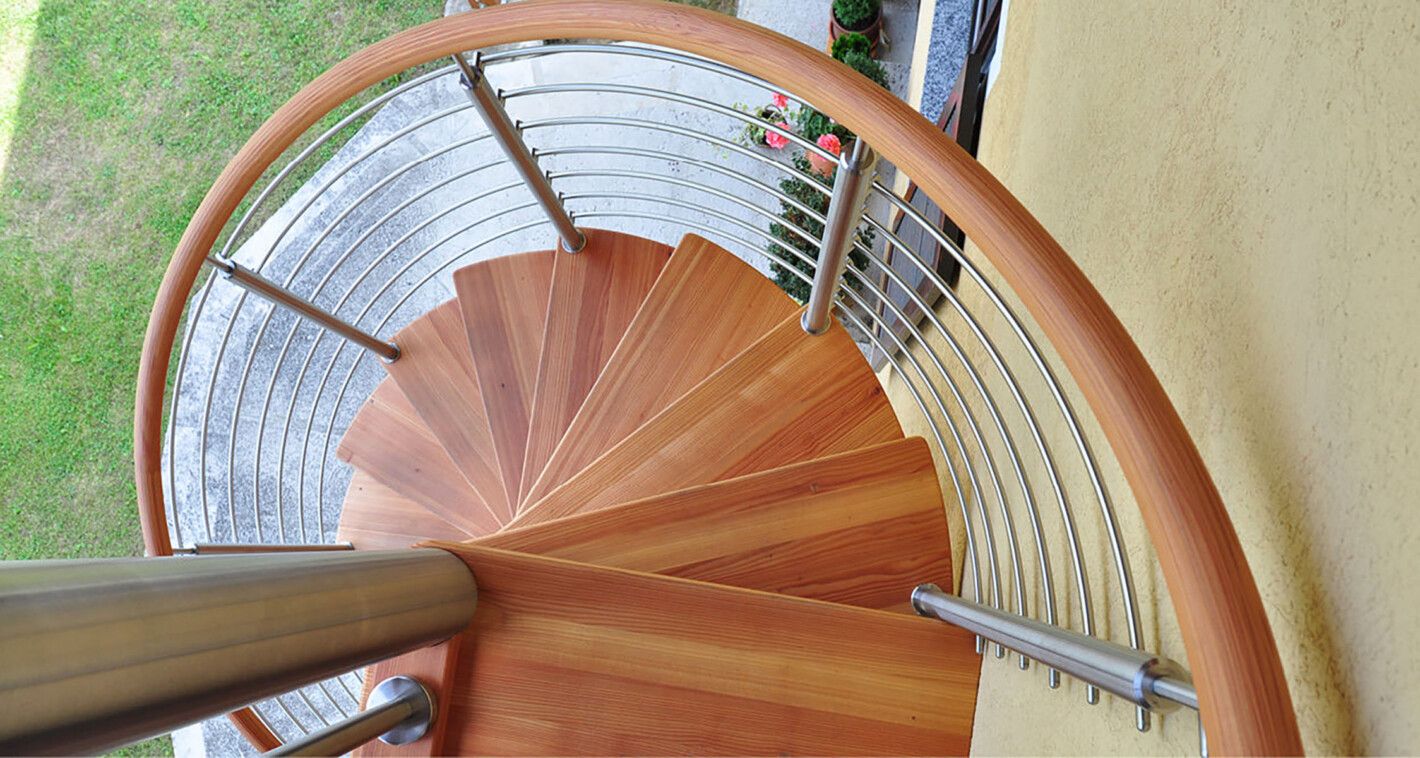 Das Zusammenspiel von Edelstahl und Lärchenholz erzeugt bei der Wendeltreppe Tirol einen interessanten Kontrast, der das Auge anspricht.