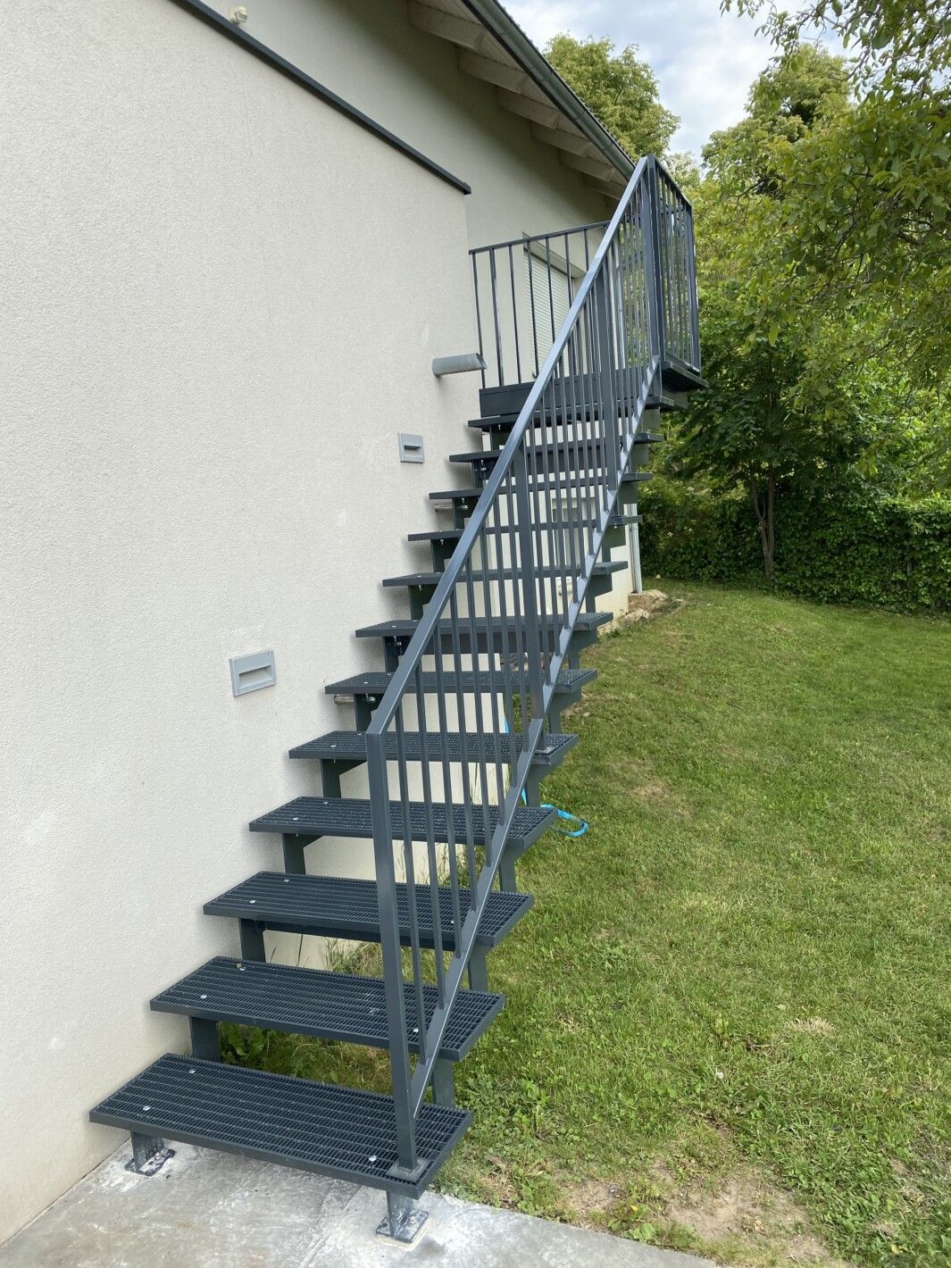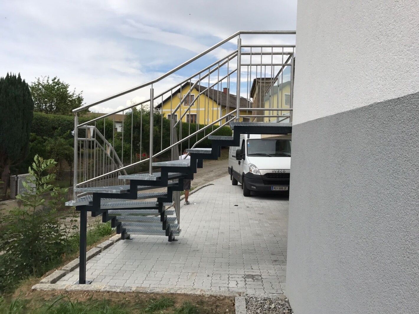 Die Stahlkonstruktion der Zweiholmtreppe Linz bietet eine hohe Stabilität und Langlebigkeit, während sie gleichzeitig eine moderne und zeitlose Ästhetik vermittelt. Stahl ist witterungsbeständig und hält den Herausforderungen von Regen, Schnee und Sonneneinstrahlung stand.